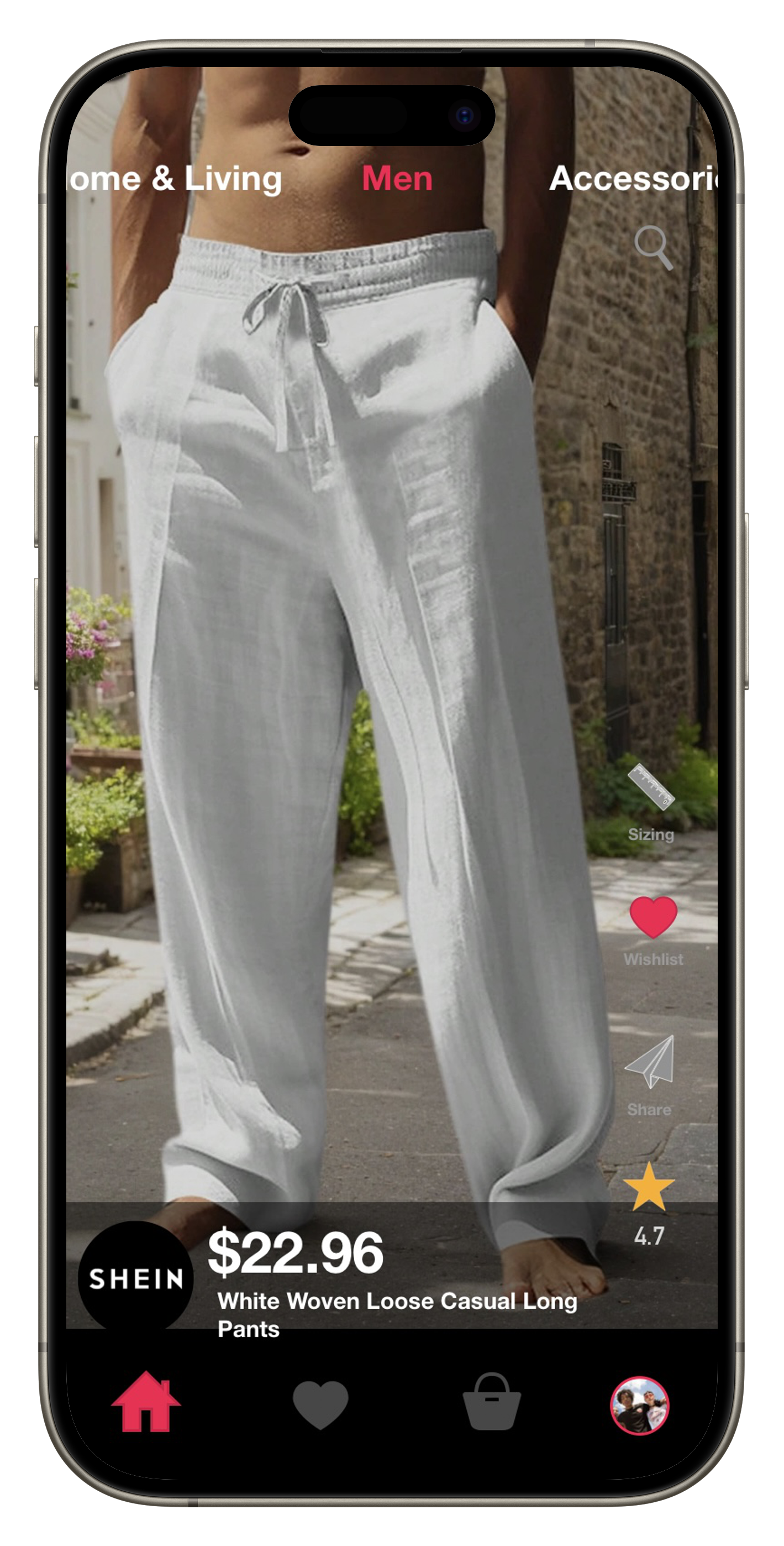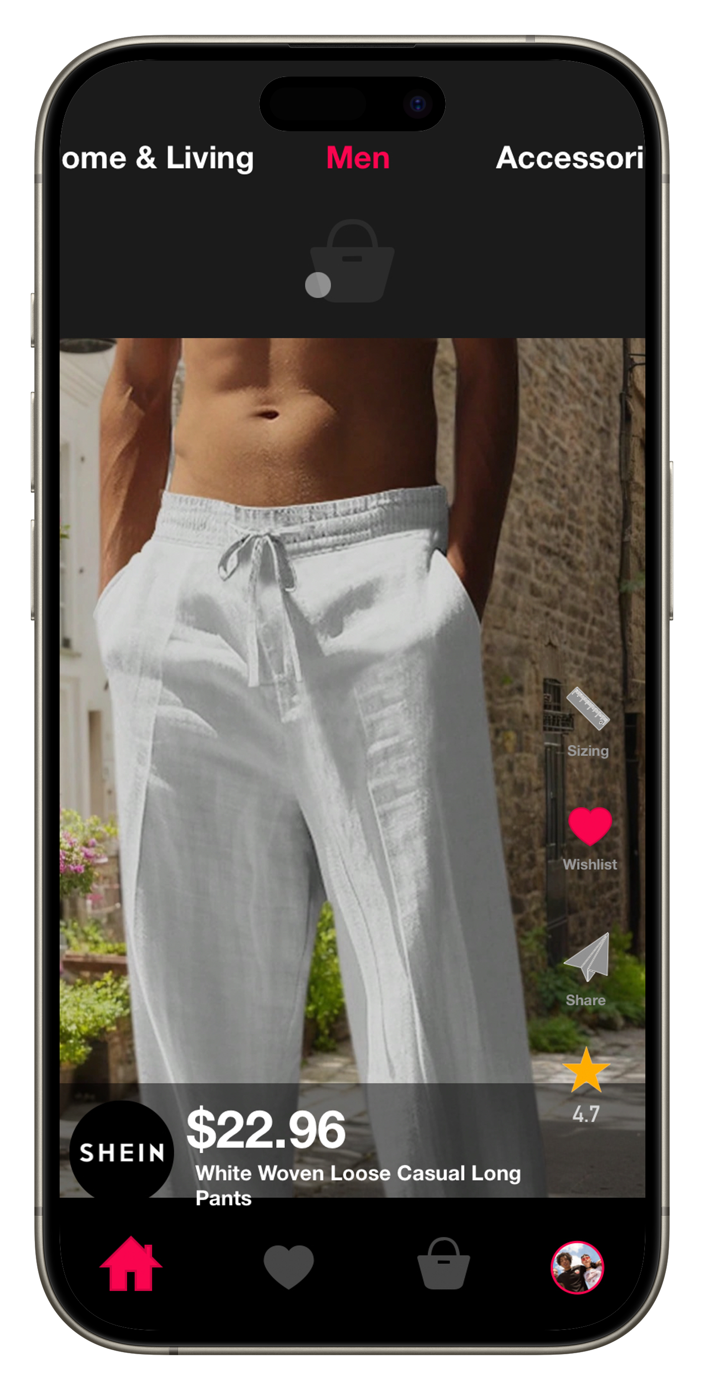 Swipe left and right to explore styles, brands, and categories. Scroll up and down like TikTok to discover products. When youâre ready, pull down from the top to drop it straight into your cart.